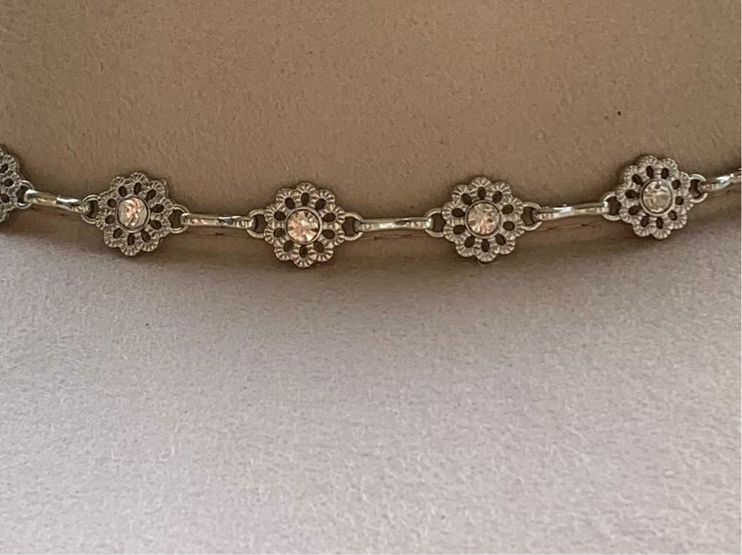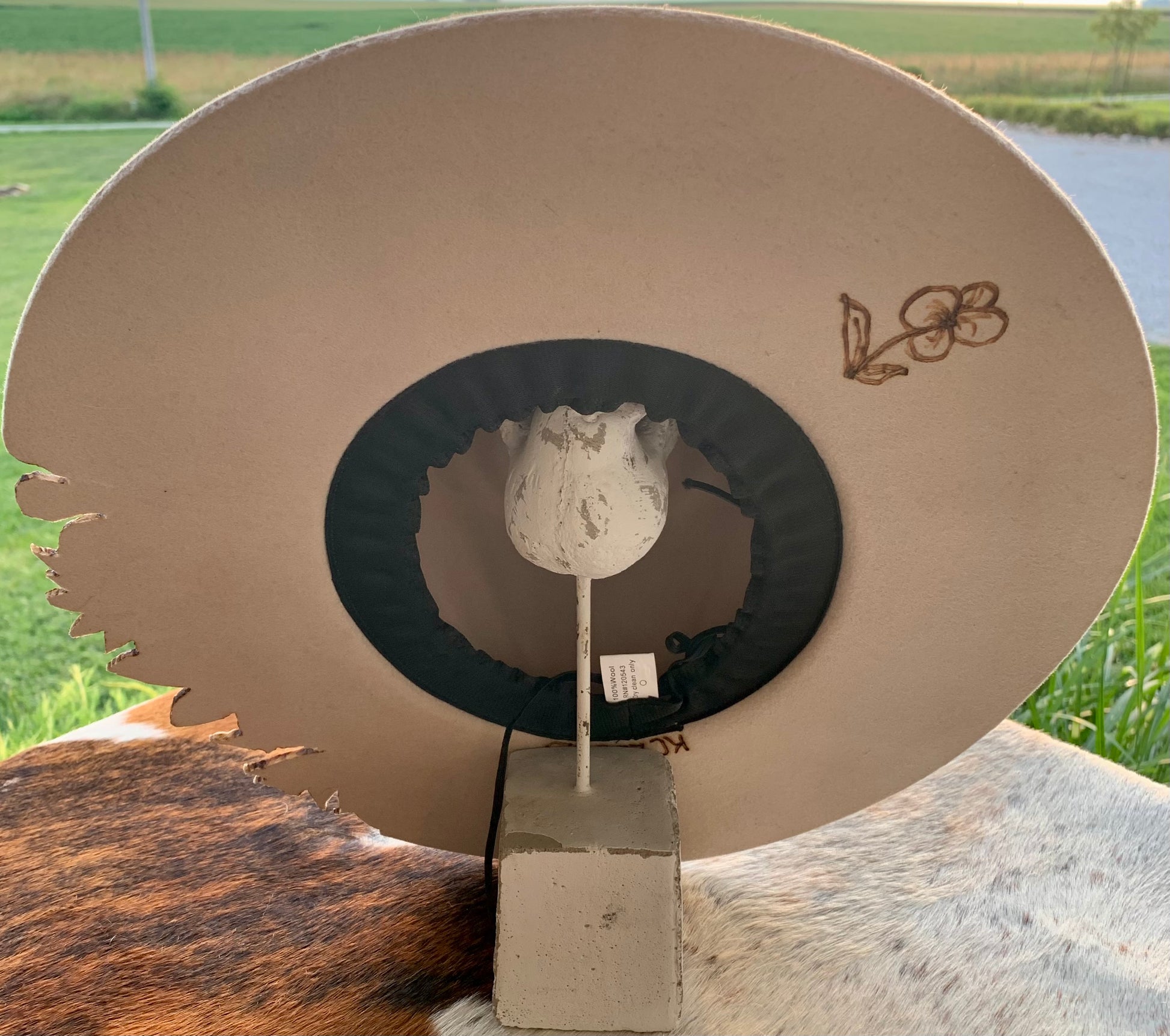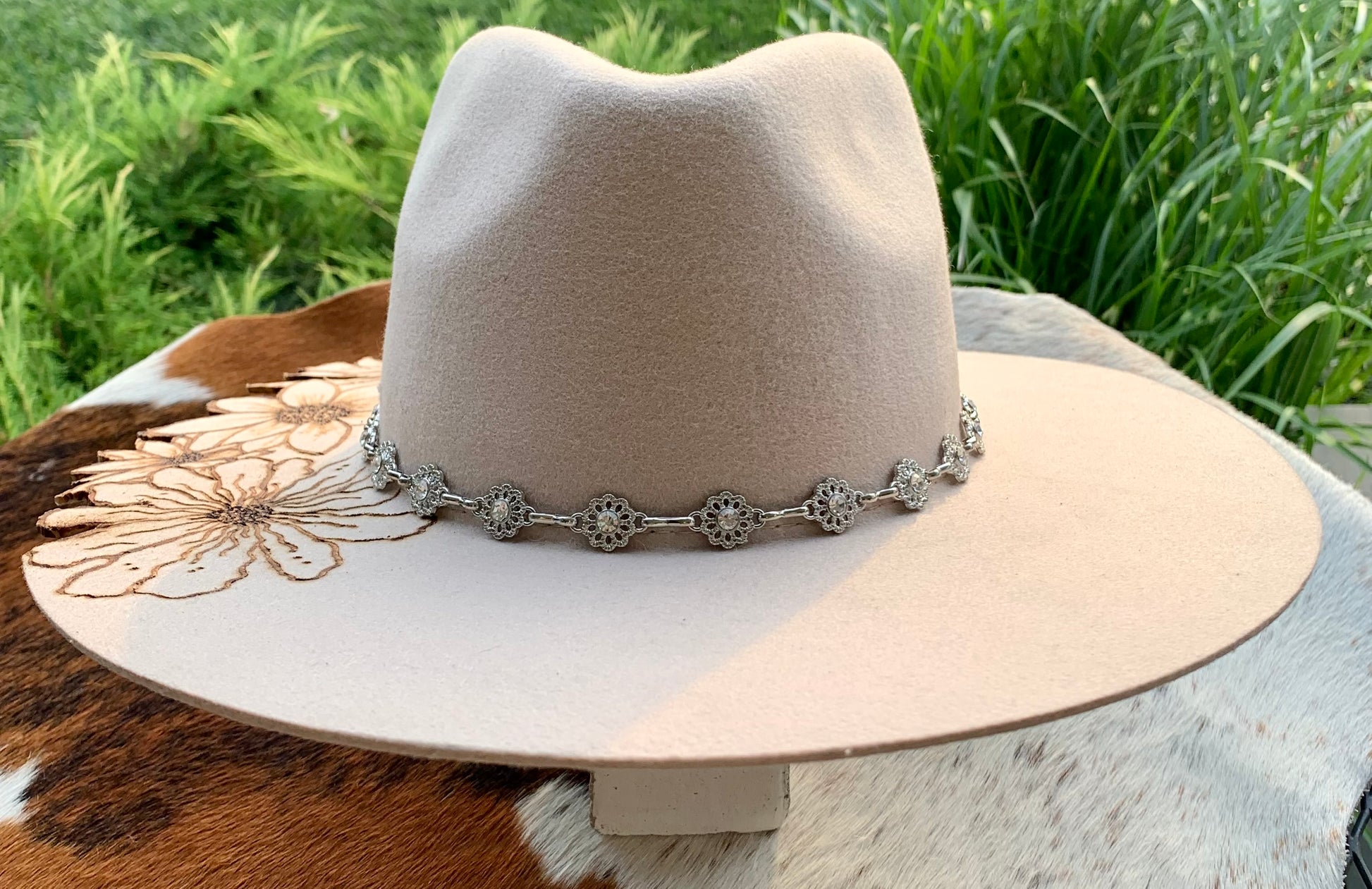 Daliah is an elegant and striking show stopper, with its live edge of burned flowers cut to enhance the detail artwork. The added touch of a silver, flowered rhinestone band adds a touch of glamour to this breathtaking headpiece. A must-have for any special occasion.